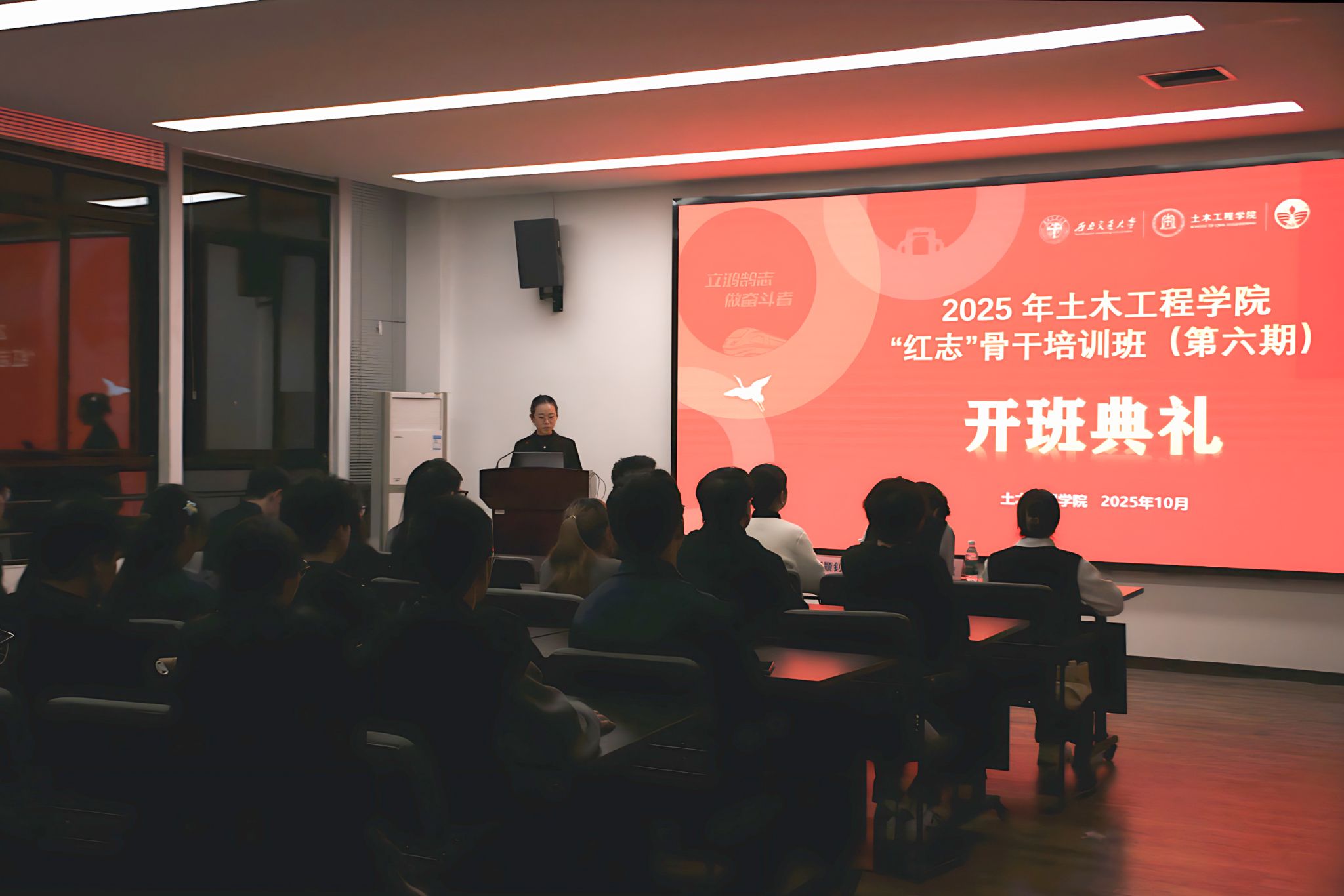 典礼第七项,全体学员在蒋方于同学的带领下庄严宣誓:“铭记兴我中华之责任,铭记土木百廿之历史;传承竢实扬华交大精神,发扬严谨治学土木传统……”铿锵有力的誓言回荡在现场,彰显着“红志”学生干部骨干的坚定信念与青春担当。