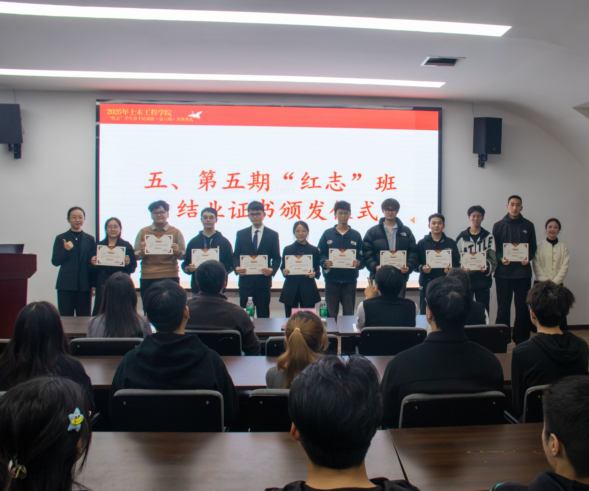 典礼第五项,杨颖钊老师和贾文怡老师为第五期“红志”班学员颁发结业证书。