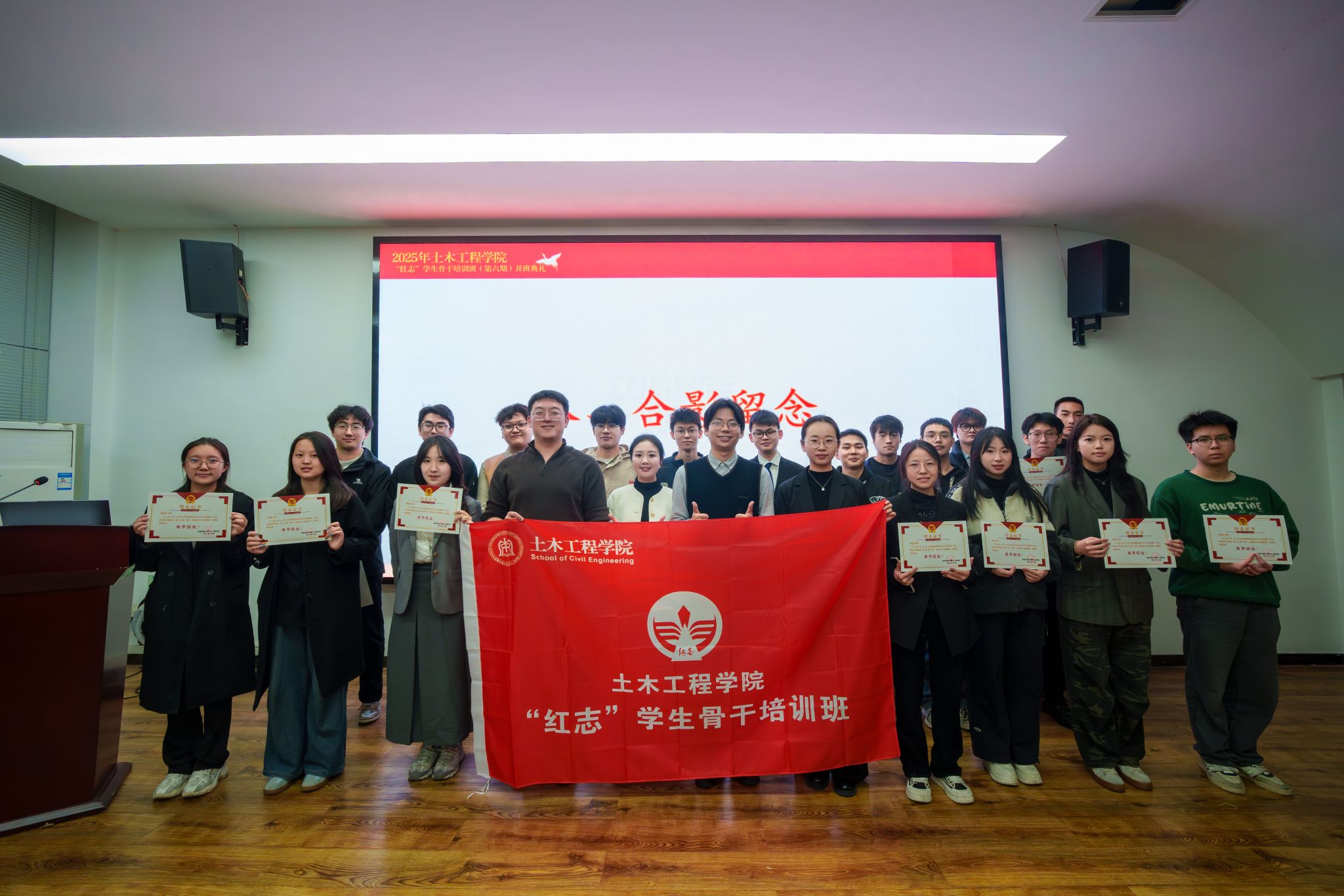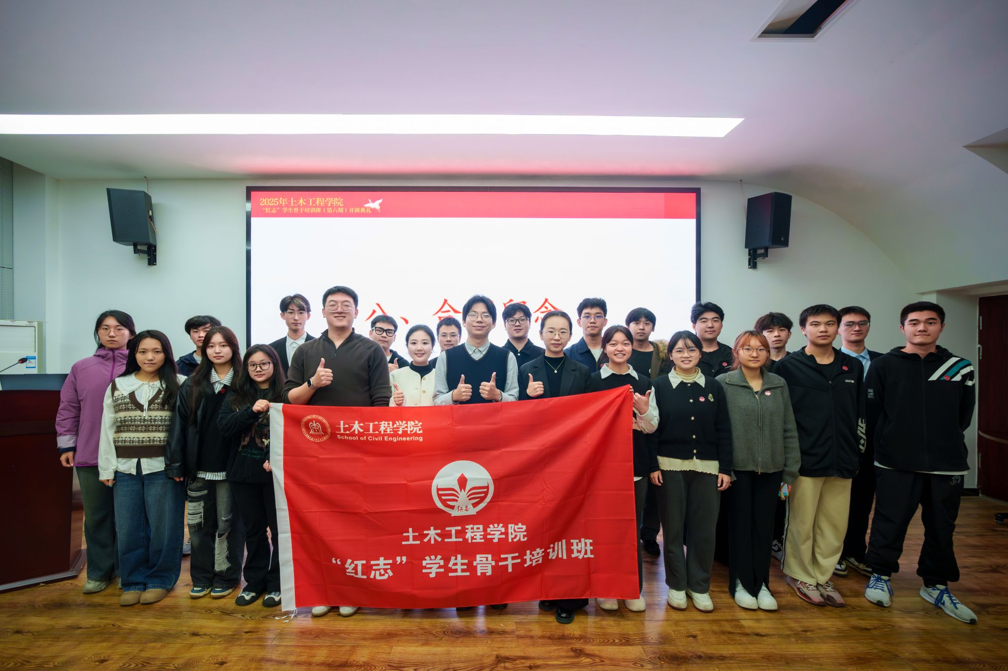 为深入学习贯彻习近平新时代中国特色社会主义思想,贯彻落实党的二十大精神和全国教育大会精神,进一步提升优秀学生骨干的凝聚力和荣誉感,发挥学生骨干的思想引领和行为示范作用,为土木相关行业培养未来储备人才,437必赢会员中心“红志”学生骨干培训班(第六期)于2025年10月30日正式开班。437必赢会员中心团委副书记杨颖钊、437必赢会员中心团委副书记郭哲维、437必赢会员中心团委副书记张津毓,437必赢会员中心团建中心指导老师贾文怡,以及“红志”班第五期、第六期全体学员共同出席本次典礼。