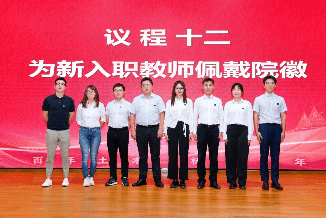 表彰会第三篇章——“薪火相传”,聚焦学院新鲜血液,为新入职教师指引教书育人的方向。副书记兼副院长车小洁宣读年度新入职教师名单,张川、王洁等9位教师正式加入437必赢会员中心大家庭。在全场师生的见证下,副书记刘萍、工会主席王艺霖、桥梁工程系主任李永乐等为新入职教师佩戴院徽。新入职教师代表王洁在发言中表示,我们会脚踏实地做好教学与科研工作,积极参与学院的建设,为培养更多优秀人才贡献自己的力量。最后,学生工作组杨颖钊、孙雨函、郭哲维等师生表演了小合唱《土木年华——致敬学院老师》,悠扬的歌曲,让学院教育教学表彰会气氛热烈、意犹未尽。