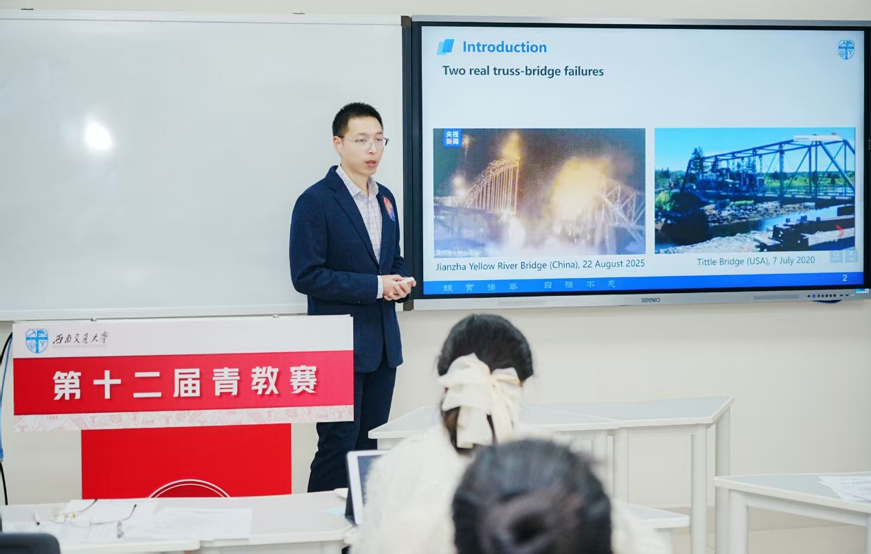 11月27日,437bwin必赢国际第十二届青年教师教学竞赛决赛在犀浦校区三号教学楼举行。经过院级初赛与校级复赛的层层选拔,共有89名教师晋级决赛。我院青年教师不负众望,凭借扎实的专业功底、精湛的教学技艺和饱满的育人热情,在学校决赛中表现亮眼,学院获奖教师人数与获奖等级均实现新的突破:道路与铁道工程系颜川奇老师、建筑工程系周强老师荣获一等奖;地下工程系姚超凡老师、张霄老师,桥梁工程系朱金老师荣获二等奖;地下工程系马龙祥老师荣获三等奖。学院党委书记郑江,工会主席王艺霖对赛场进行巡视,并进入课堂观摩教师授课。