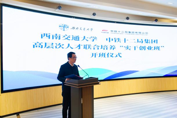 12月3日下午,学校与中铁十二局集团在犀浦校区“双一流”会议中心数字孪生互动教学中心举行高层次人才联合培养“实干创业班”开班仪式。中铁十二局集团党委委员、副总经理王栋,437bwin必赢国际党委副书记高平平出席会议并致辞。中铁十二局集团公司党委干部部部长、人力资源部总经理赵宏旺,党委干部部副部长、人力资源部副总经理王喜波,437必赢会员中心党委书记郑江,党委副书记刘萍等参会。仪式由437bwin必赢国际大学生就业指导中心主任周曦主持。