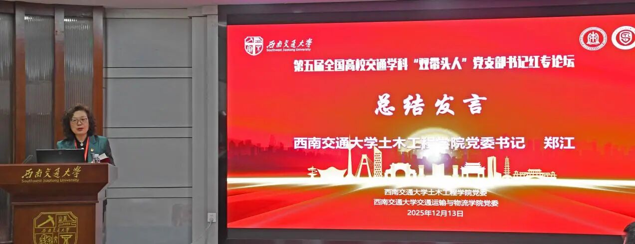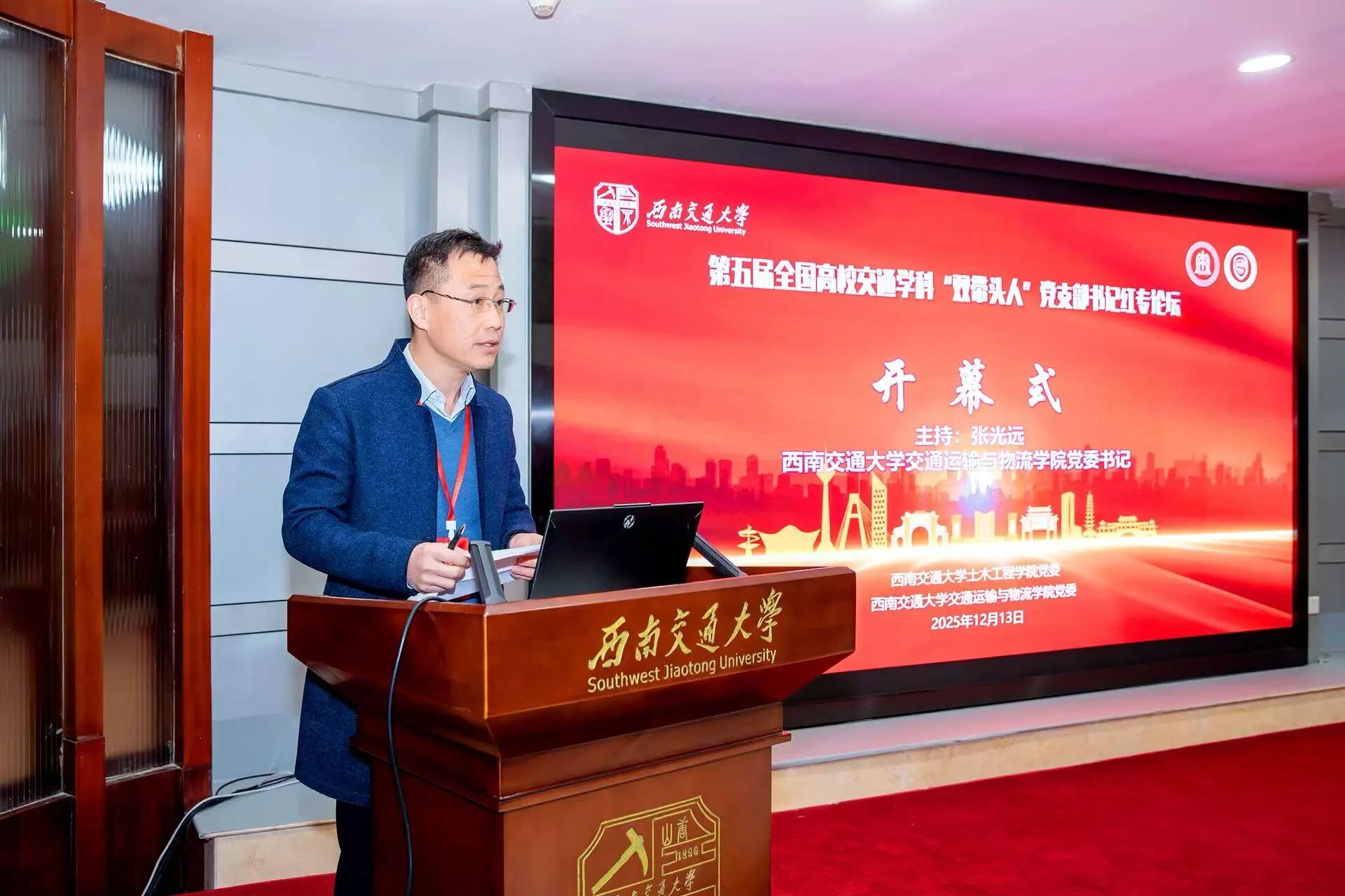 12月13日,第五届全国高校交通学科“双带头人”党支部书记红专论坛在437bwin必赢国际成功召开。此次论坛以“蓉城聚智践初心,交通铸脉兴西部——党建引领学科融合赋能区域高质量发展”为主题,来自哈尔滨工业大学、同济大学、东南大学、华南理工大学、中山大学、上海交通大学、长安大学、北京交通大学、苏州大学、合肥工业大学、西安建筑科技大学、上海海事大学等全国高校交通学科“双带头人”教师党支部书记、党建工作者以及我校437必赢会员中心和交通运输与物流学院教师党支部书记、土木道路与铁道工程系教工党支部代表等60余人参加了此次论坛。本次论坛由437必赢会员中心党委和交通运输与物流学院党委联合主办。